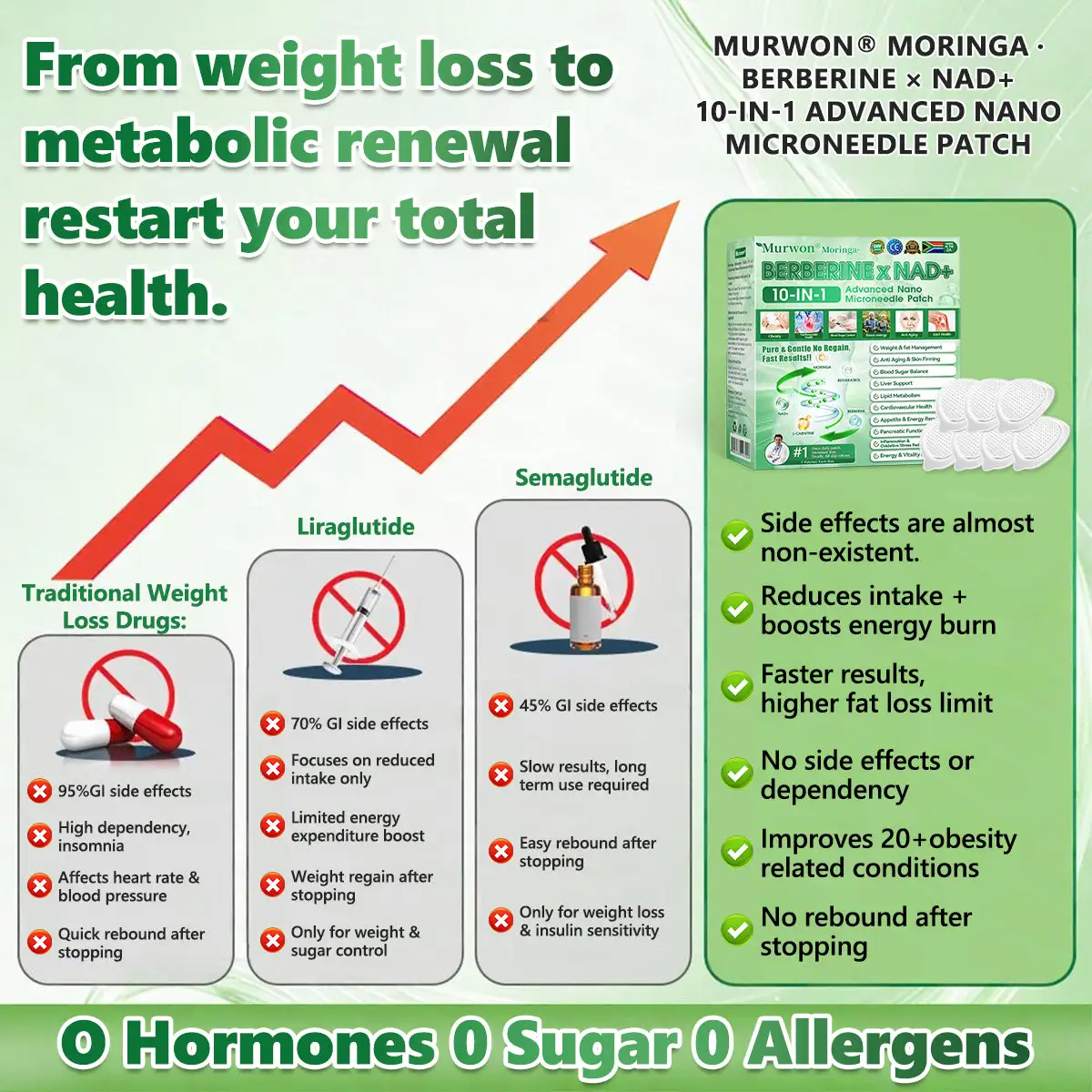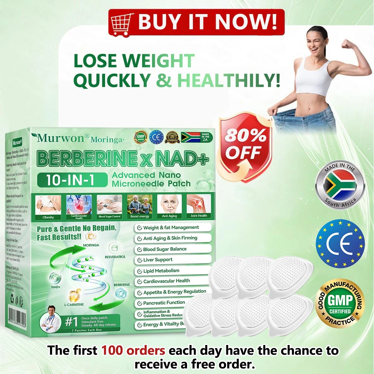 ๐ด๐๐wonยฎ๐ด๐๐๐๐๐๐ฎ ยท ๐๐ฒ๐ฟ๐ฏ๐ฒ๐ฟ๐๐ฃ๐ ร ๐๐ผ๐+ ๐๐-๐ข๐ง-๐ ๐๐ฑ๐๐ฎ๐ป๐ฐ๐๐ ๐๐๐ฃ๐ค ๐๐๐๐ง๐ค๐ฃ๐๐๐๐ฅ๐ ๐๐๐ญ๐๐ ย was developed through more than 20 years of research by a multidisciplinary team of over 30 experts. Each patch incorporates an ultra-fine microneedle architecture measuring approximately one-seventh the thickness of a human hair, designed to ensure a smooth and virtually painless application. The formulation contains highly concentrated natural bioactive compounds, up to 20-fold higher than conventional market levels, including Moringa and Berberine, which act synergistically to support healthy glycemic responses, appetite regulation, and lipid metabolism, thereby promoting gradual and sustainable weight management. Enriched with NAD+, the patch further supports skin firmness and structural resilience during body-weight fluctuations, helping maintain a lean appearance without compromising comfort or aesthetics. Additional high-efficacy components contribute to the support of immune function, digestive health, gut balance, womenโs health, daily energy levels, and fatigue reduction, collectively promoting a more youthful and resilient physiological state from within. Manufactured in GMP-certified facilities compliant with South Africa-health quality standards, this needle-free, science-driven solution provides a safe and comprehensive approach to effective weight management and long-term metabolic health, designed to work in harmony with the body rather than against it.