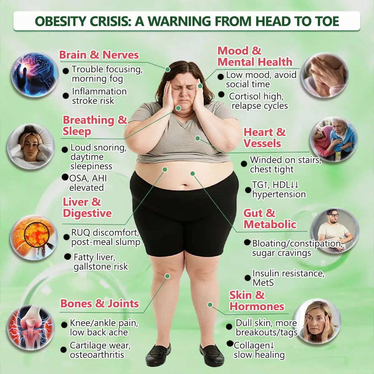 - Cancer risk: Increases cancer risk by 50% compared to people with healthy weight.