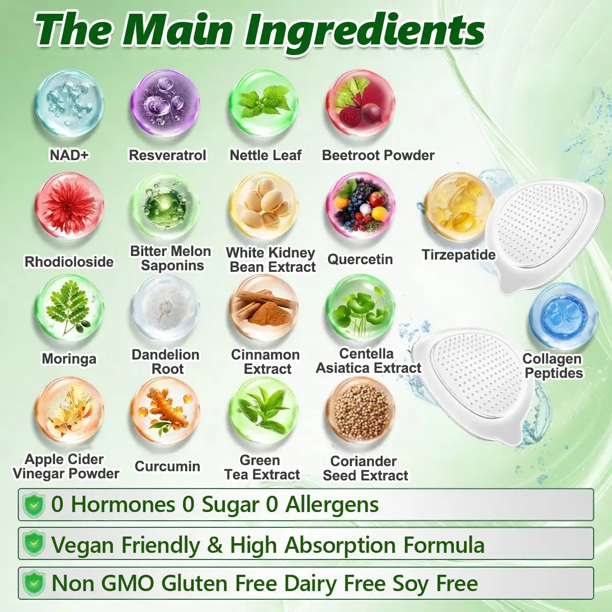 Ten star ingredients precisely formulated to create a complete fat-loss ecosystem: